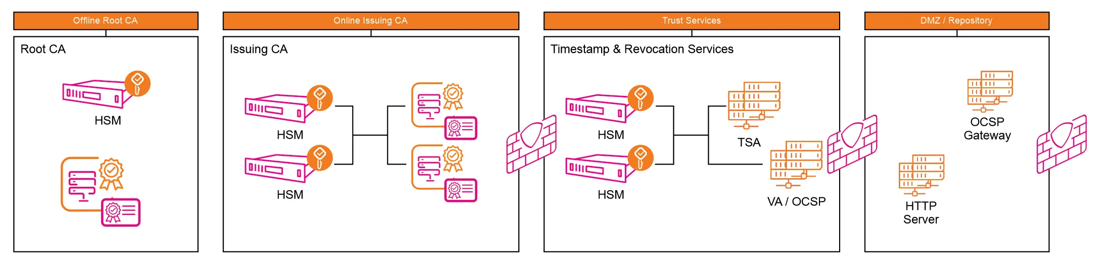 PKI Appliance – all in a Box is a solution for deploying Public Key Infrastructure (PKI), packaged in a box hardware device with an accompanying Hardware Security Module (HSM).