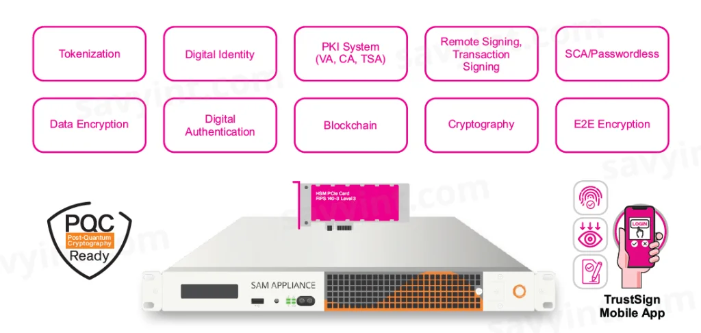 Notably, Sam Appliance is an all-in-one platform for data encryption, digital signatures, and mobile identity, featuring a FIPS 140-2 Level 3-certified server appliance integrated with Hardware Security Modules (HSMs), SAM software, key-management systems, and digital-signing software. This flexible security platform supports diverse deployment needs across banking, finance, healthcare, education, telecommunications, broadcasting, and media sectors.